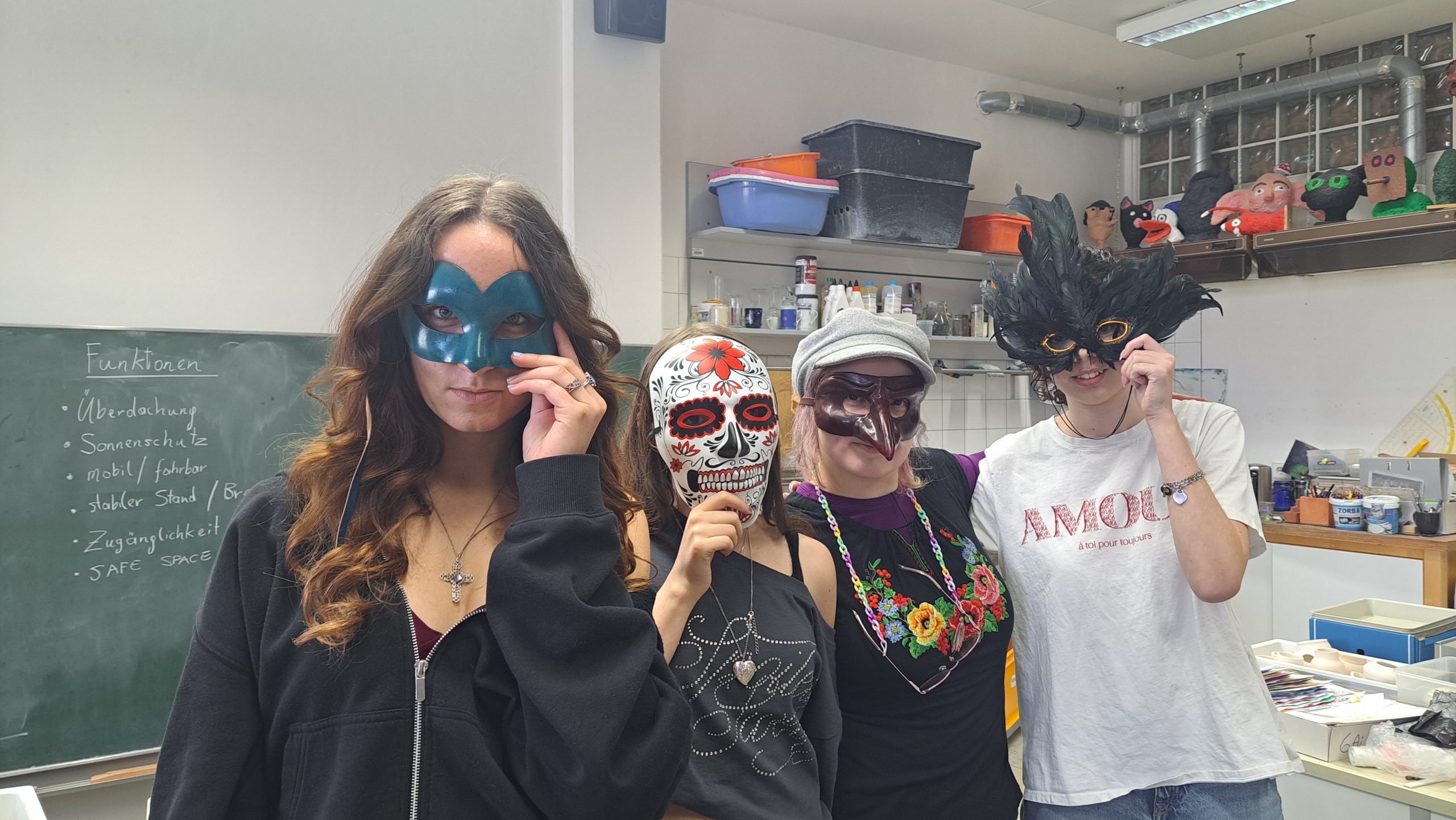 Zu Gast war Cordula Nossek, die Intendantin der Puppentheatertage, um im Kunst Unterricht bei Frau Prof. Krall mit der 5Bb,6Bb und 7Bb zum Thema Masken