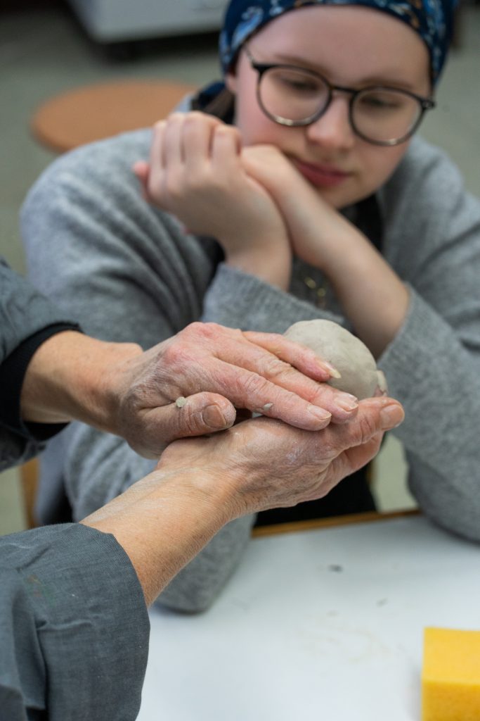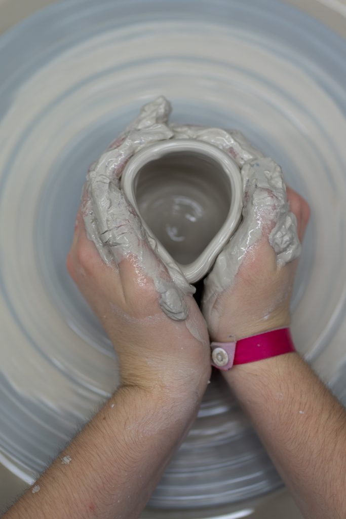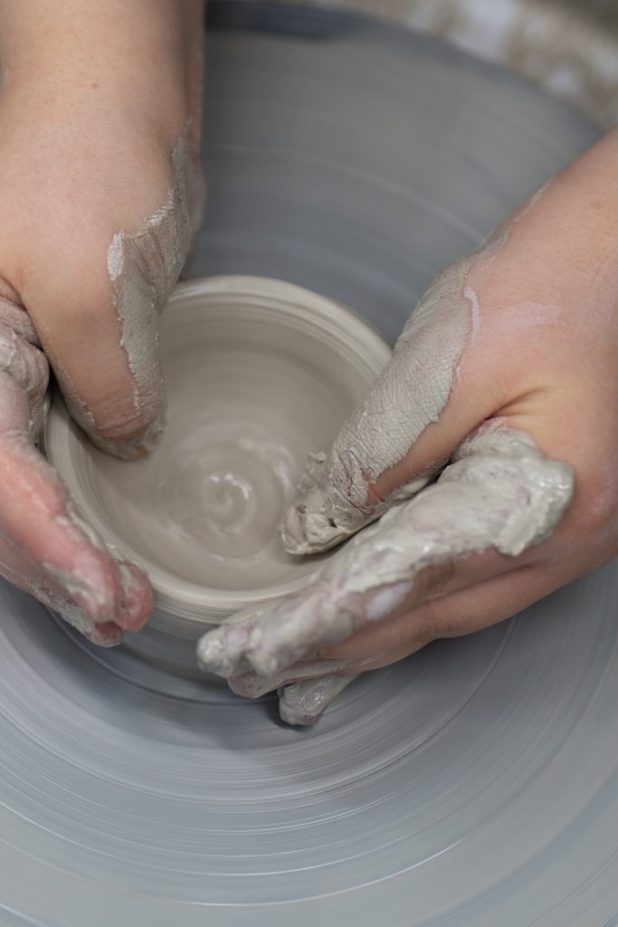 An der Töpferscheibe hieß es zunächst: Ruhe bewahren, durchatmen und Ton zentrieren. Klingt einfach, ist es aber ganz und gar nicht. Mit viel Geduld, Fingerspitzengefühl und dem Mut zum Scheitern entstanden schließlich erste Gefäße, Teller und sogar Vasen.