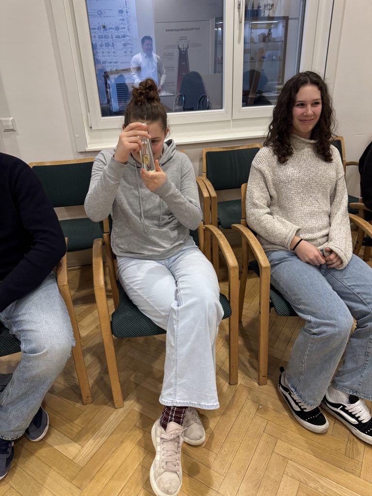 Am 10.2. nahm die 6Bn zuerst am Chemi(E)rleben organisiert vom Institut für Anorganische Chemie der Universität Wien teil. Die Schüler:innen erlebten einen Experimentalvortrag und nahmen danach an einem Workshop entweder zum Thema Sensoren oder zum Thema Rasterfeldmikroskopie teil.